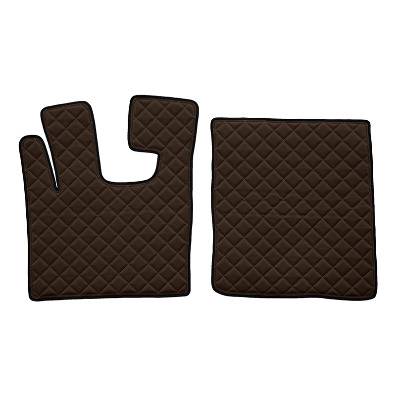 El juego completo de alfombras de cuero del fabricante F-CORE es adecuado para pisos de camiones hechos de cuero ecológico de calidad. El conjunto está disponible en 7 tonos de color.