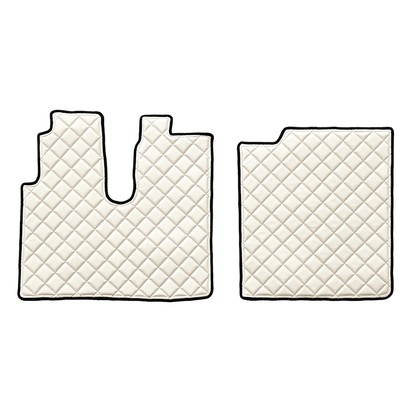 El juego completo de alfombras de cuero del fabricante F-CORE es adecuado para pisos de camiones hechos de cuero ecológico de calidad. El conjunto está disponible en 7 tonos de color.