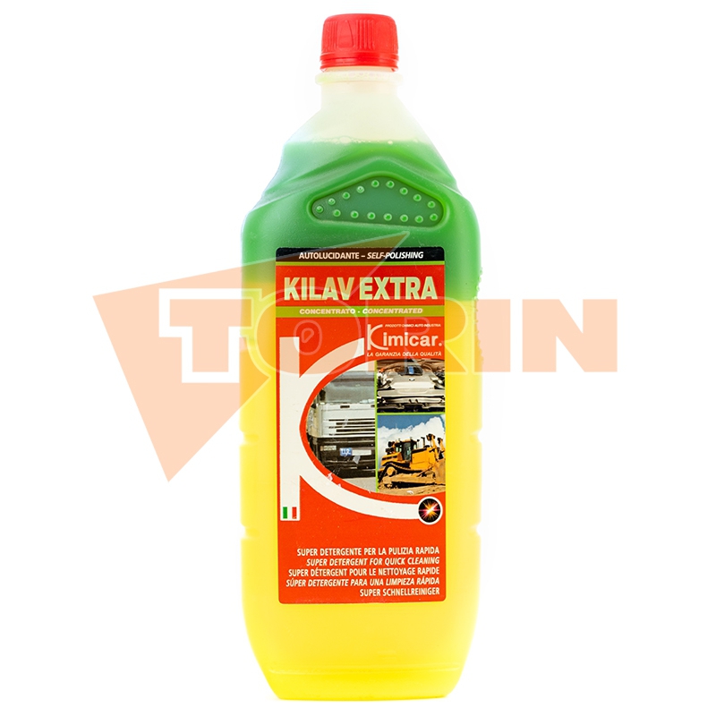 Super mocny, super skoncentrowany dwuskładnikowy detergent KIMICAR Kilav Extra, idealny do mycia pojazdów ciężarowych, ciężarówek, ciągników, plandek, silników, felg, metali stalopodobnych, ciężarówek chłodni, obrabiarek, maszyn do robót ziemnych itp. Odpowiedni do usuwania ruchu film, uporczywy brud, ziemia i tłuszcz. Kilav Extra jest aktywnym detergentem i zapewnia doskonałe właściwości: szczotkowanie lub nabieranie gąbką nie jest konieczne. Zielona formuła: nie zawiera fosforanów.